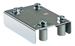 Направляющая пластина — скоба с четырьмя роликами — вариан для тяжелых створок, расситанный на большую нагрузку и большее сопротивление раскачиванию створки, чем 2-х роликовые пластины.