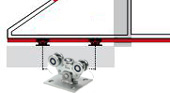 Роликовые тележки или салазки MINI, 4-х колесные в данном комплекте, корпус из стали, многослойный. Крепится к бетонному основанию при помощи анкерных болтов. Износ обычно касается подшипников и роликов. Варианты исполнения: из нержавеющей стали Inox, из оцинкованной стали, из алюминия