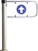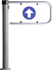 Электромеханическая калитка WHD-04 для избежания путаницы и удобства людей оснащается символами прохода — стрелка означает, что через эту калитку можно пройти только в данную сторону, но не обратно. Знак СТОП обозначает, что проход закрыт. Также на стойке калитки есть индикаторы прохода, обозначающие рабочее состояние калики: красный индикатор означает, что калитка закрыта, зеленый — что открыта.
