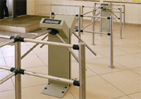 Часто встречаютсяв фойе школ, поликлиник, спортивных центров и т.д. Данное оборудование служит для ограничения прохода людей без пропусков, для разделения входящих и выходящих людей , для разделения проходящих по-одному, выполняет и другие функции.